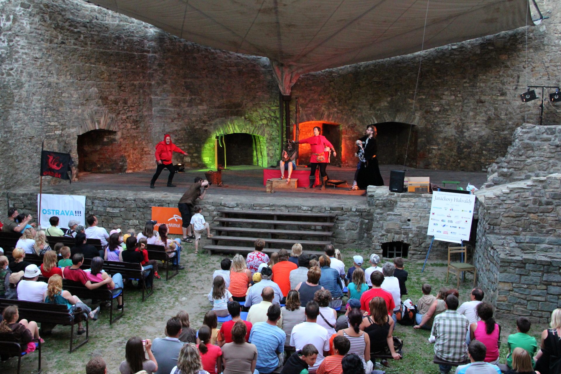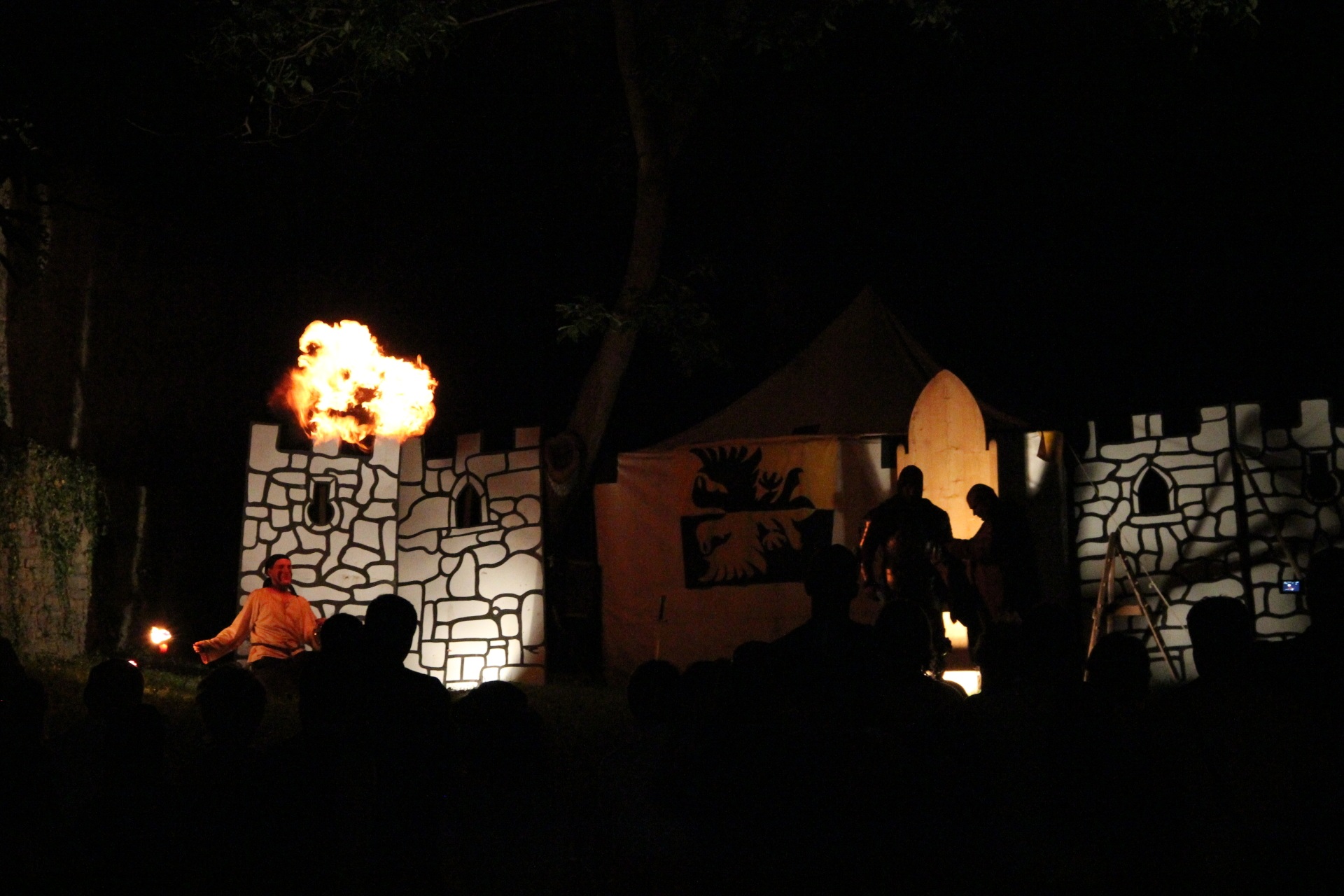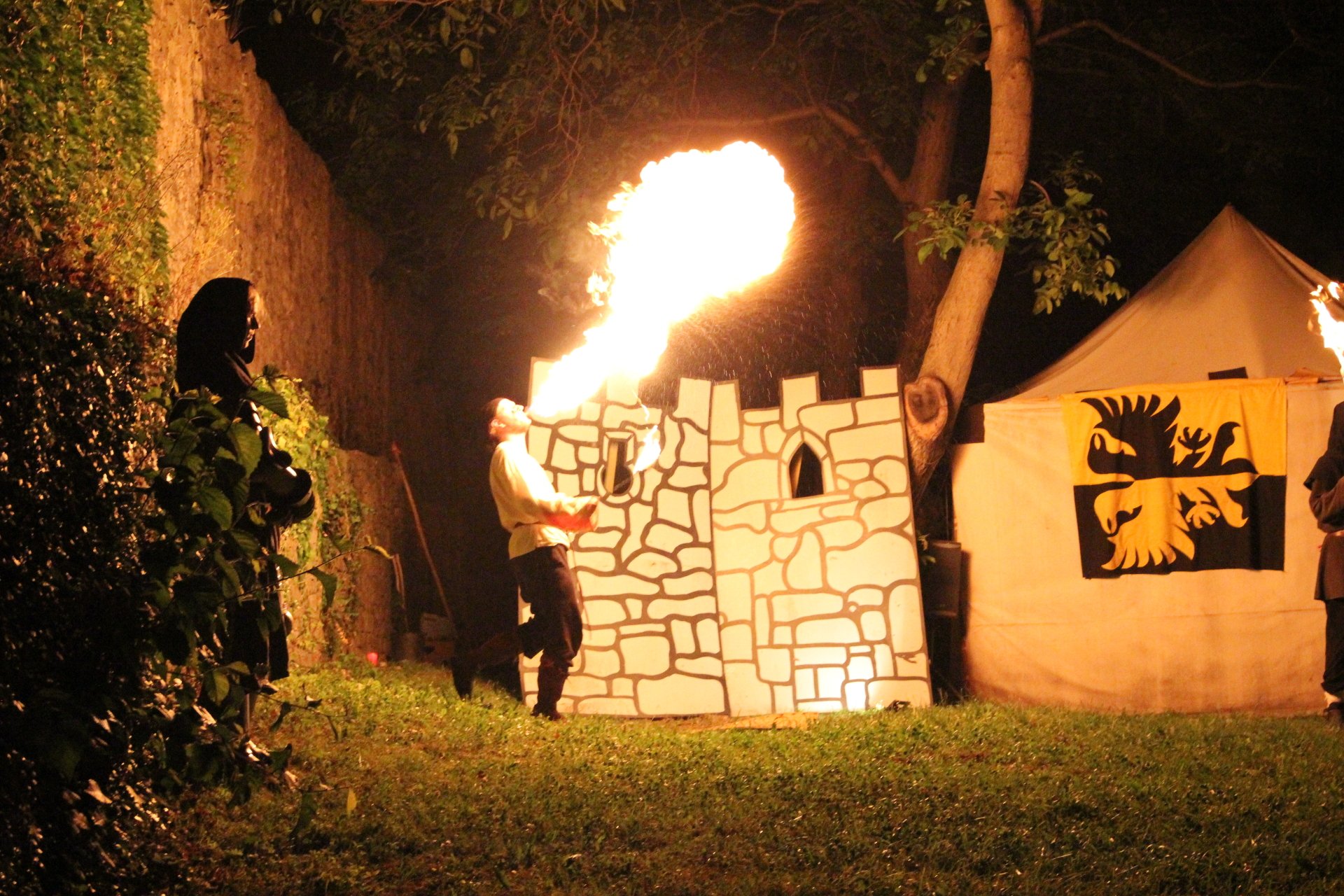 Rytíři na hradě Hukvaldy, ukázka historického šermu, ohňová šou.